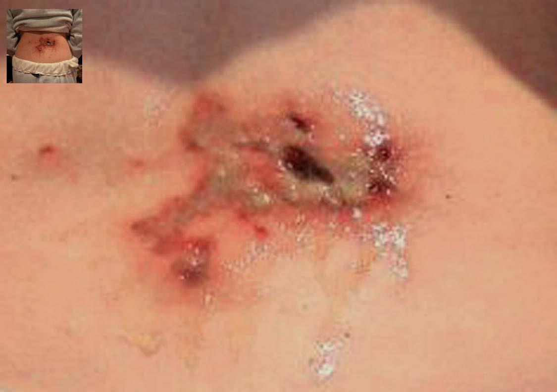 There are toxins in that wound that do not come from a heat burn. Therefore, you must remove them or not heal. The clay and other suggestions apply. Lime internally is not likely to help.
